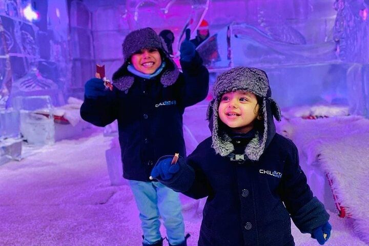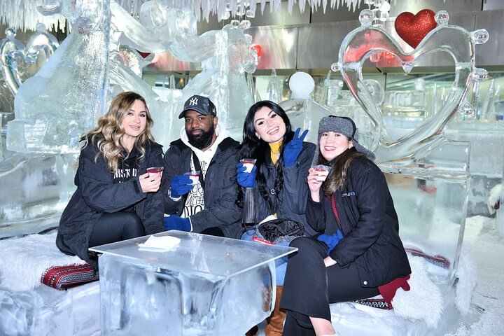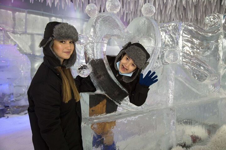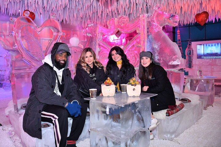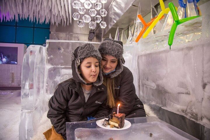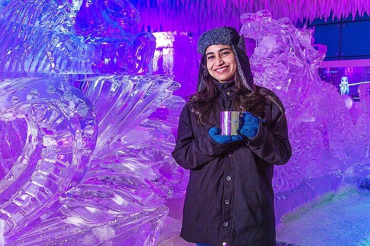 Experience -6°C at Chillout Ice Lounge Dubai with stunning ice sculptures, hot food, and drinks.