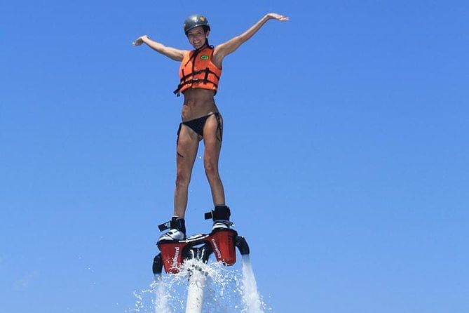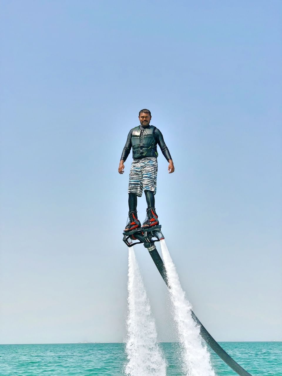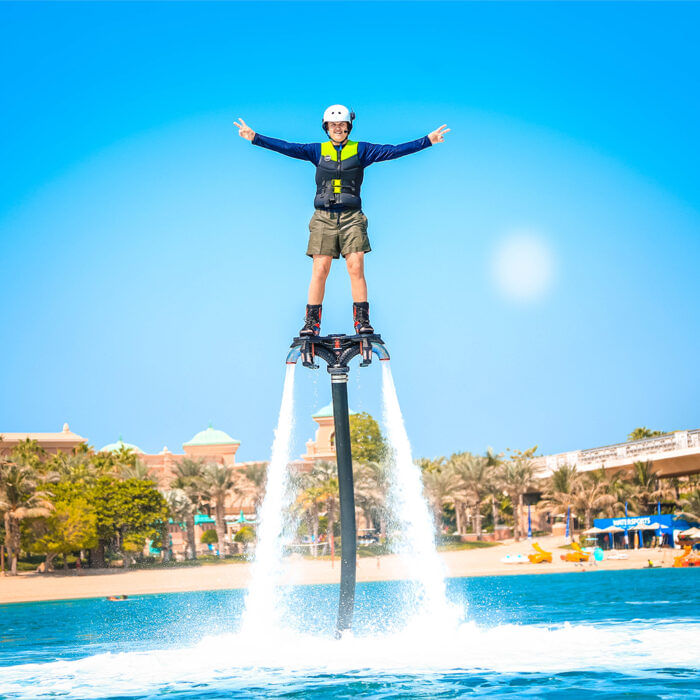 Experience an adrenaline-pumping 30-minute flyboarding adventure in Dubai! Soar up to 6 meters, guided by a pro instructor. Master thrilling tricks and dive like a dolphin an unforgettable ride above Dubai's iconic skyline.