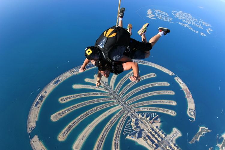 Experience the thrill of a tandem skydive at 13,000 ft with Skydive Dubai! Enjoy a 60-second free fall and breathtaking views of the Palm Drop Zone. Your adventure includes safety briefings and a camera flyer to capture your jump!