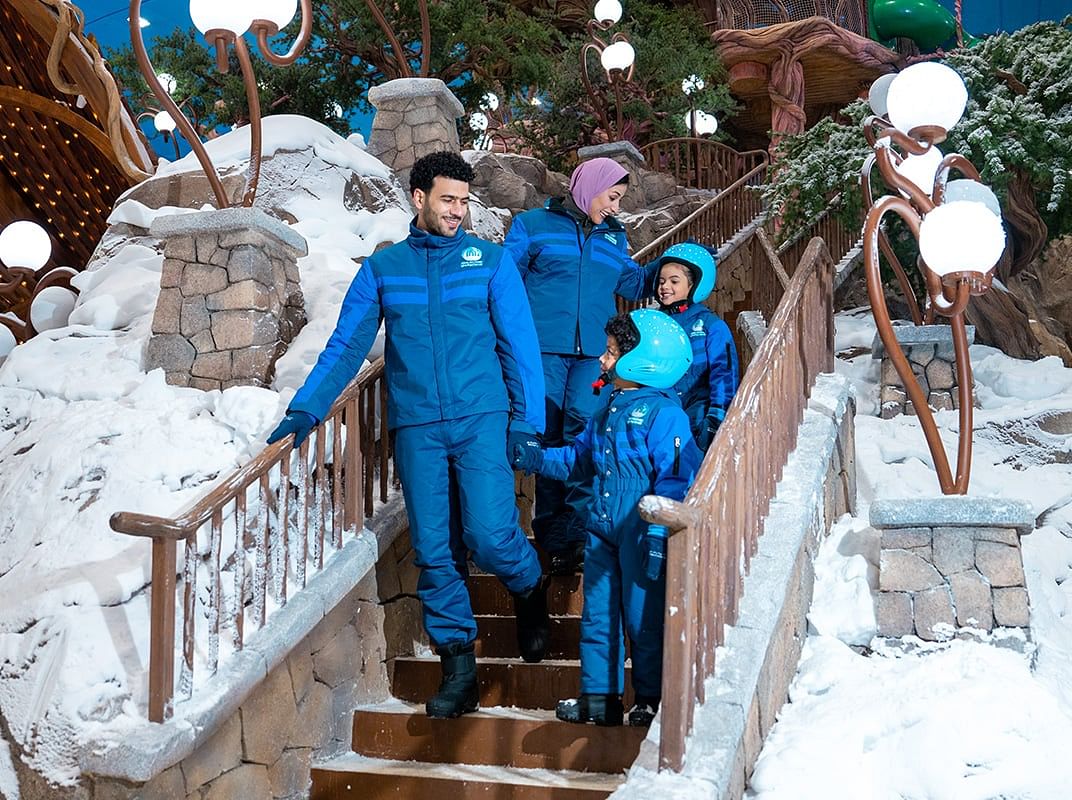 Experience desert winter at Snow Abu Dhabi: ski, snowboard, and play in a snowy village fun for all ages!