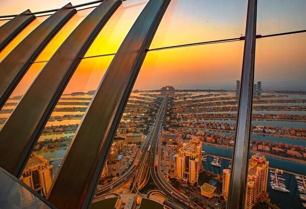 At The Palm Tower Observatory, enjoy 360-degree views of Palm Jumeirah from enclosed and open sections.